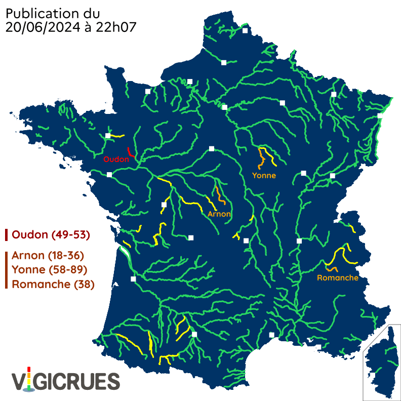 . La goutte froide continue sa remontée vers le Proche Atlantique avec un flux de sud concernant le pays activant de l’instabilité mais aussi des remontées sahariennes. Orages fortement pluvieux possibles. Les crues de cours d’eau se multiplient.