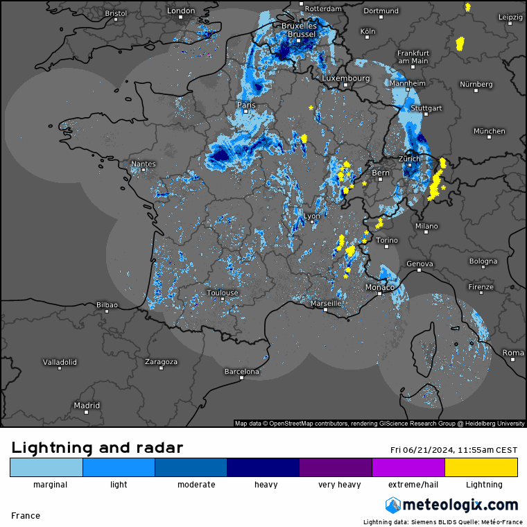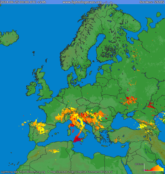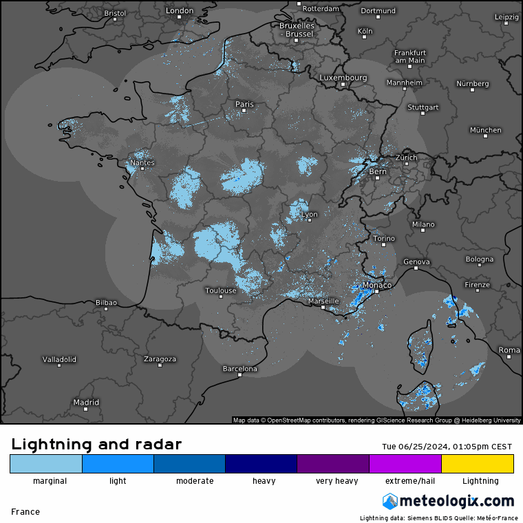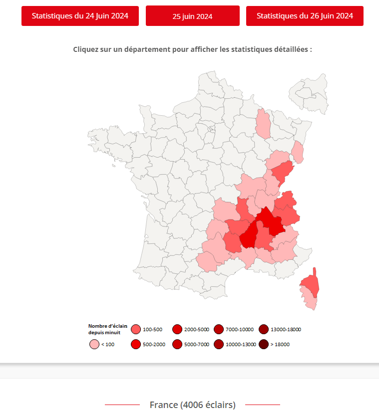 51 116 éclairs relevés sur 4 jours du 18 au 21 juin. Source via Météo Express
