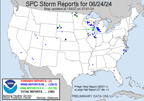 A noter plusieurs tornades à déplorer, au moins 6 à 7 potentiellement. Des enquêtes de terrain sont en cours pour déterminer réellement la nature des phénomènes venteux ayant provoqué des dégâts.