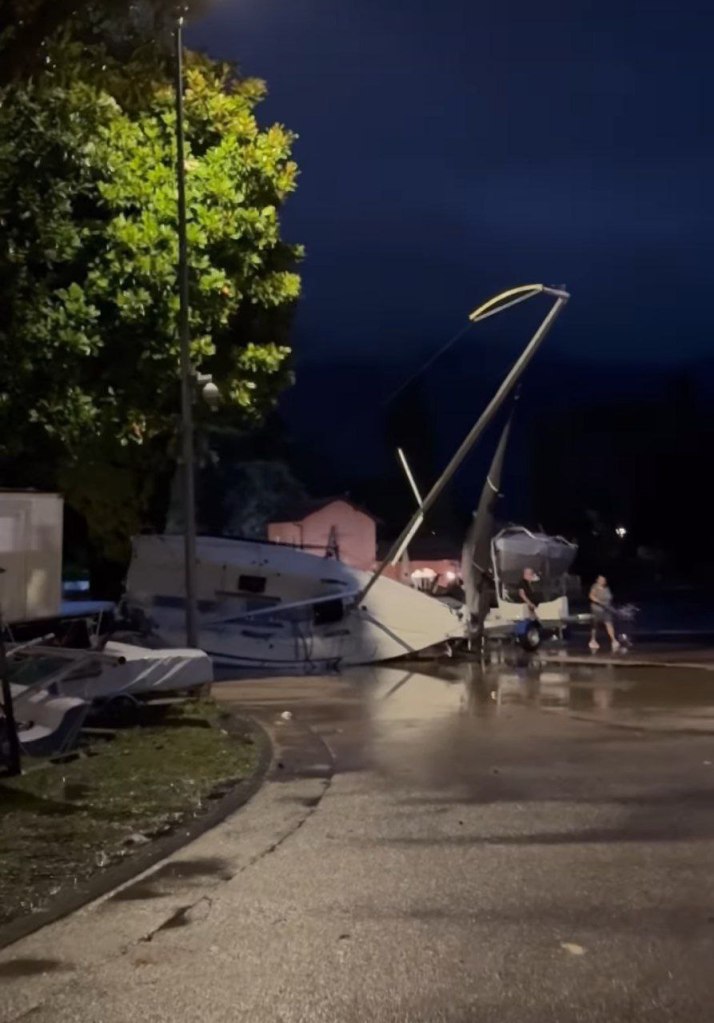 Dégâts à Riva del Garda en raison de violentes rafales descendantes. Source : Tornado in Italia