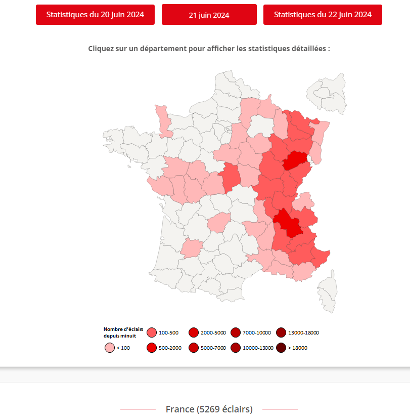 5 269 éclairs relevés en ce vendredi 21 juin 2024. Source : Keraunos