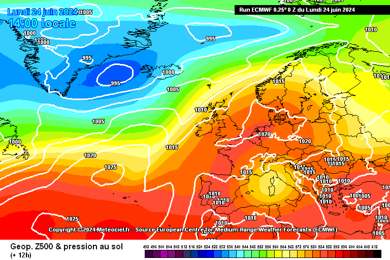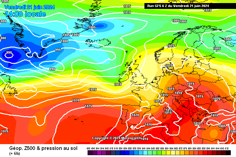 . Hauts géopotentiels sur extrême nord Groenland, bas géopotentiels ailleurs