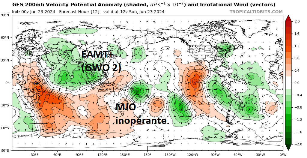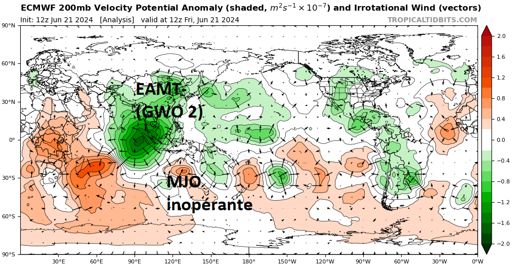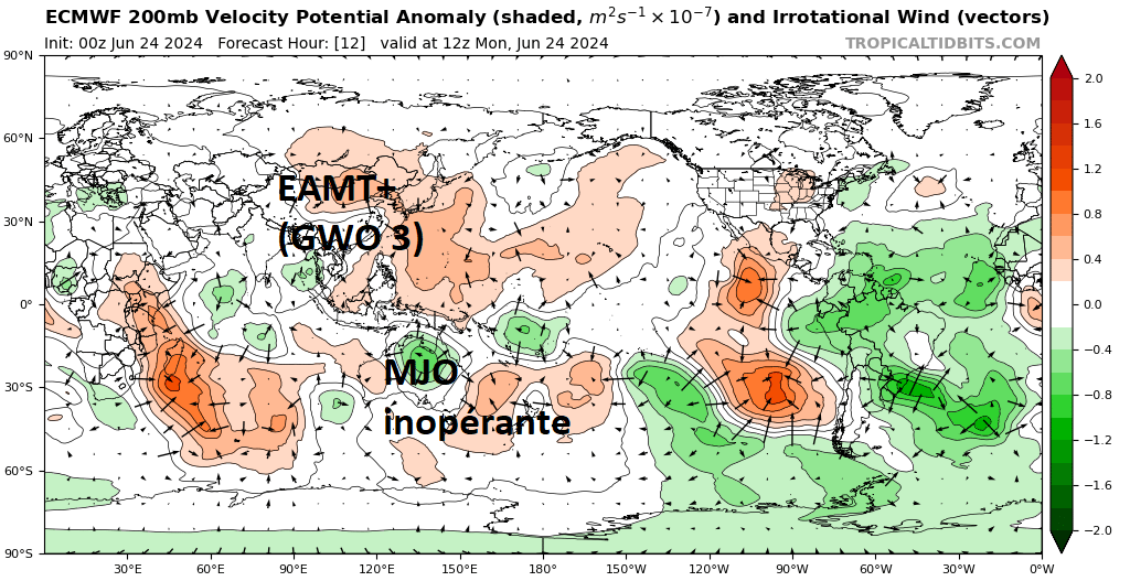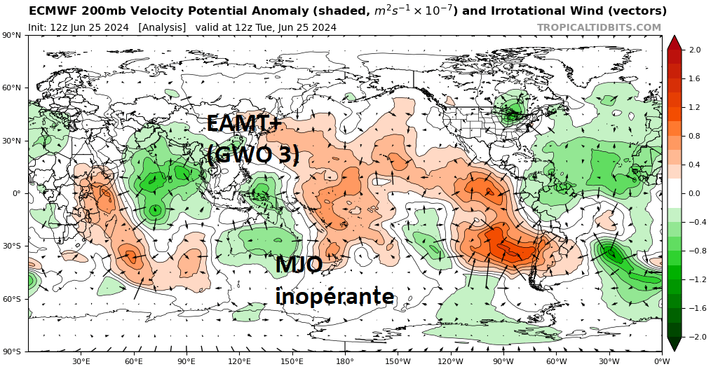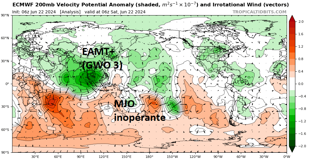 . EAMT- GWO phase 2 (AAM-) : favorise un courant jet plus amplifié à la latitude environ 35 nord de l’Océan Indien nord.