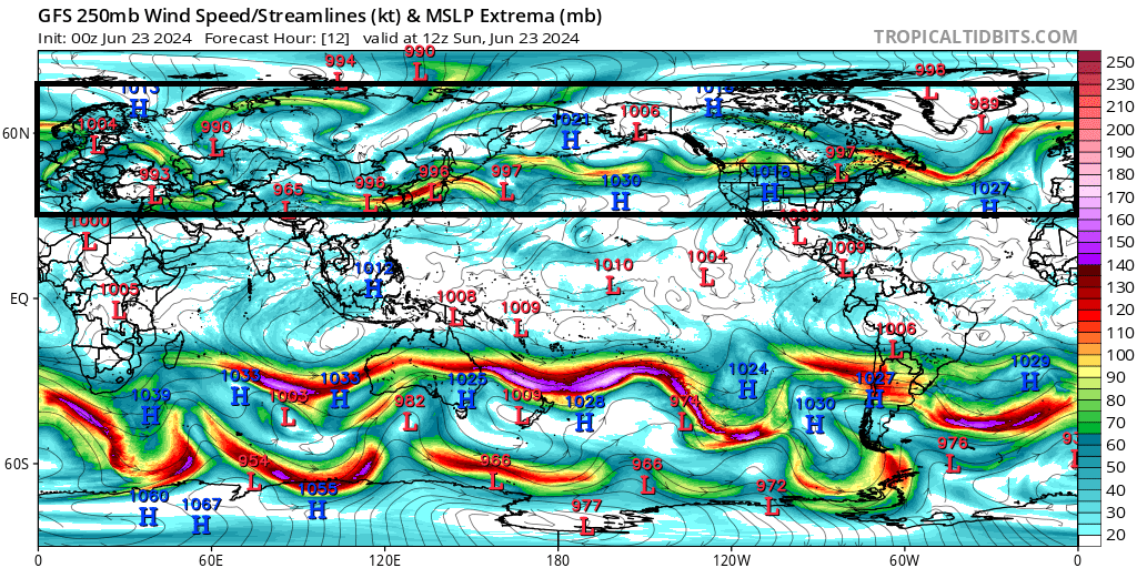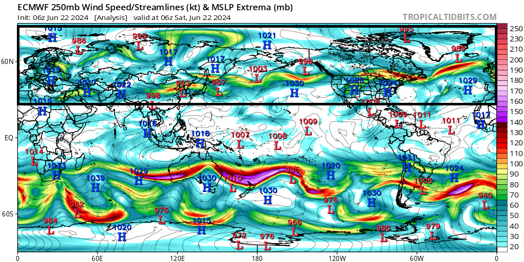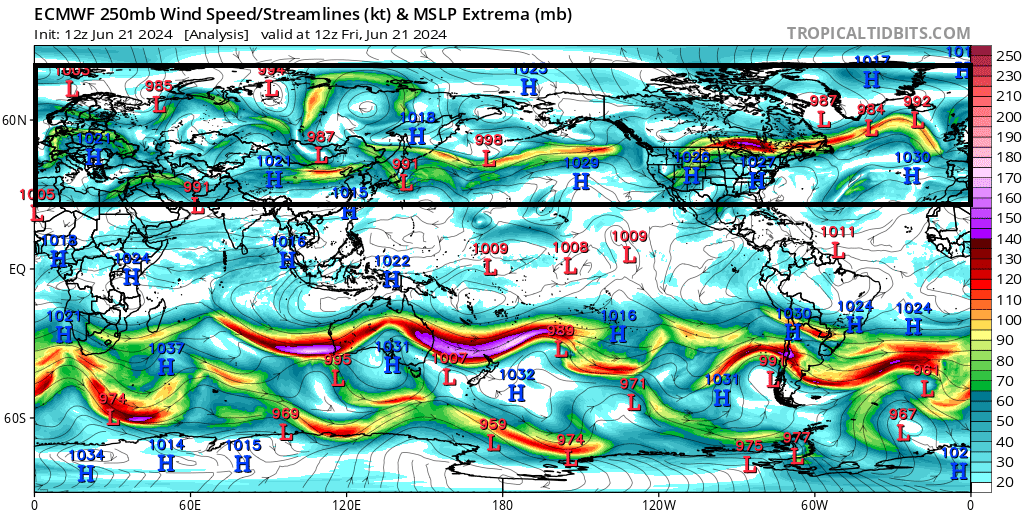 . Schéma général redevenant progressivement plus zonal (on observe une configuration de double jet sur une partie de la Sibérie expliquant les très fortes chaleurs actuelles)