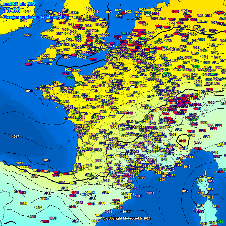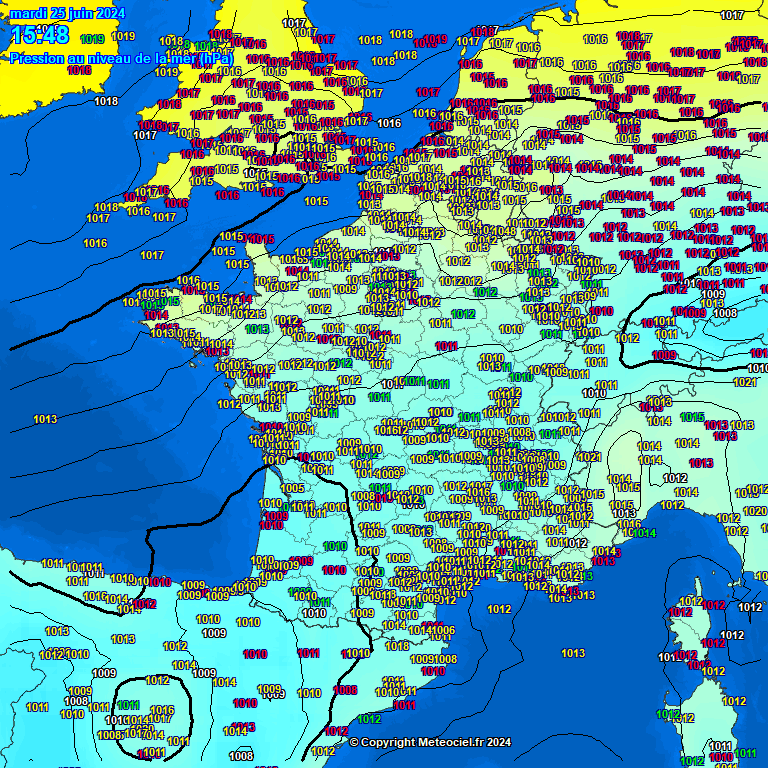. Pressions dépressionnaires, marais barométrique dans le sud-est. Anticycloniques sur l’extrême nord