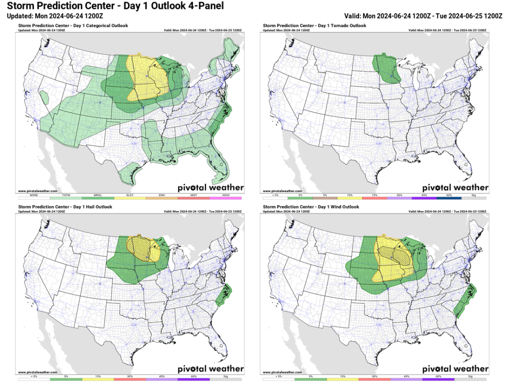 2 reports de tornades il y a quelques heures, une dans le Minnesota et une dans le Wisconsin.