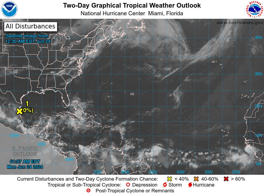 Pas de développement à venir de l’onde tropicale sur l’extrême ouest du Golfe du Mexique avec des conditions environnementales qui deviennent défavorables.