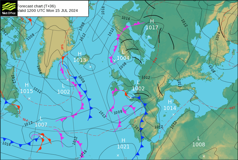 En fin de nuit prochaine, le front froid rentrera par la façade ouest en donnant des pluies abondantes à son passage sur la Bretagne.