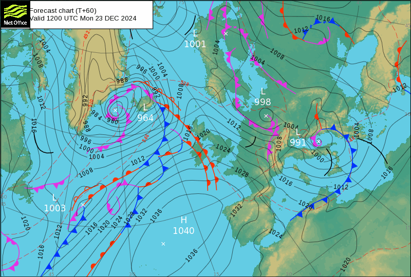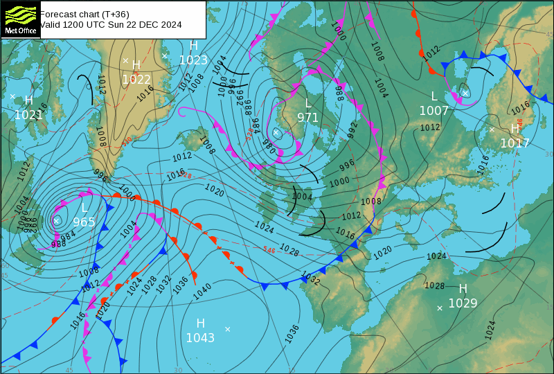Un front froid actif glisse sur le pays du nord-ouest au sud-est en donnant de bonnes pluies et des chutes de neige abondantes en montagne à de plus en plus basse altitude. Un front secondaire pourrait suivre par le nord-ouest en cours d’après-midi donnant des lignes de grains très venteuses et parfois gréligènes et/ou orageuses.